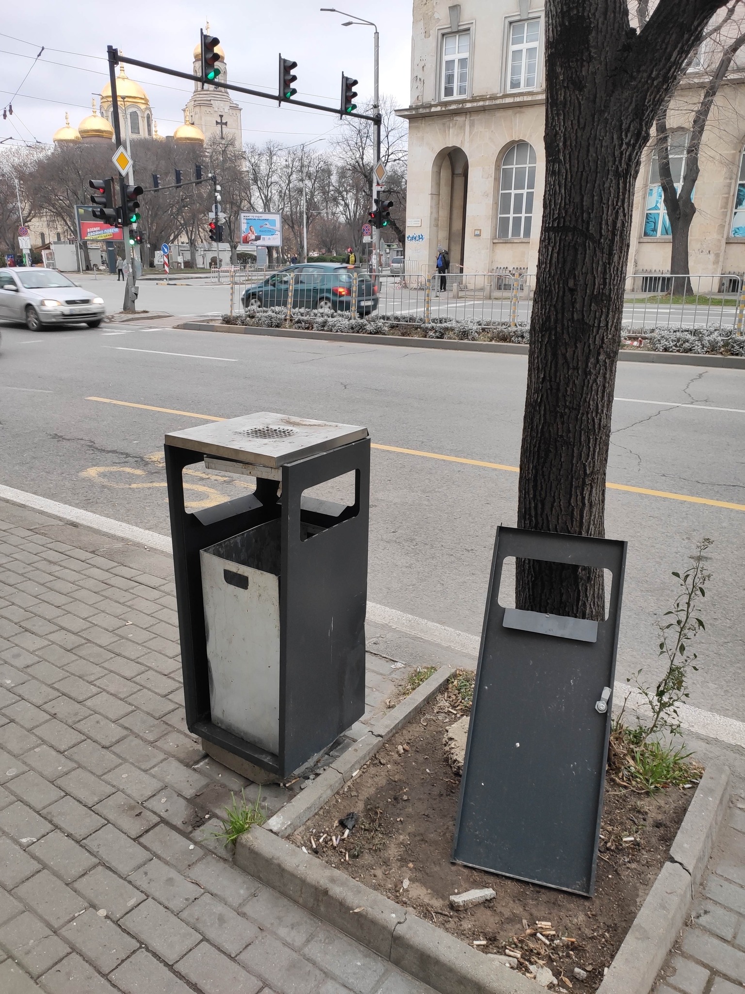 „Нови кошчета за отпадаци издържаха само 5 месеца, как ще изглеждат през 1 година, дори не искам да си представя.“, казва още подалият сигнала Митко Иванов. За съжаление това е състоянието на кошчетата из почти целия център, в района на общината, по бул. „Мария Луиза“ и около варненската катедрала.
