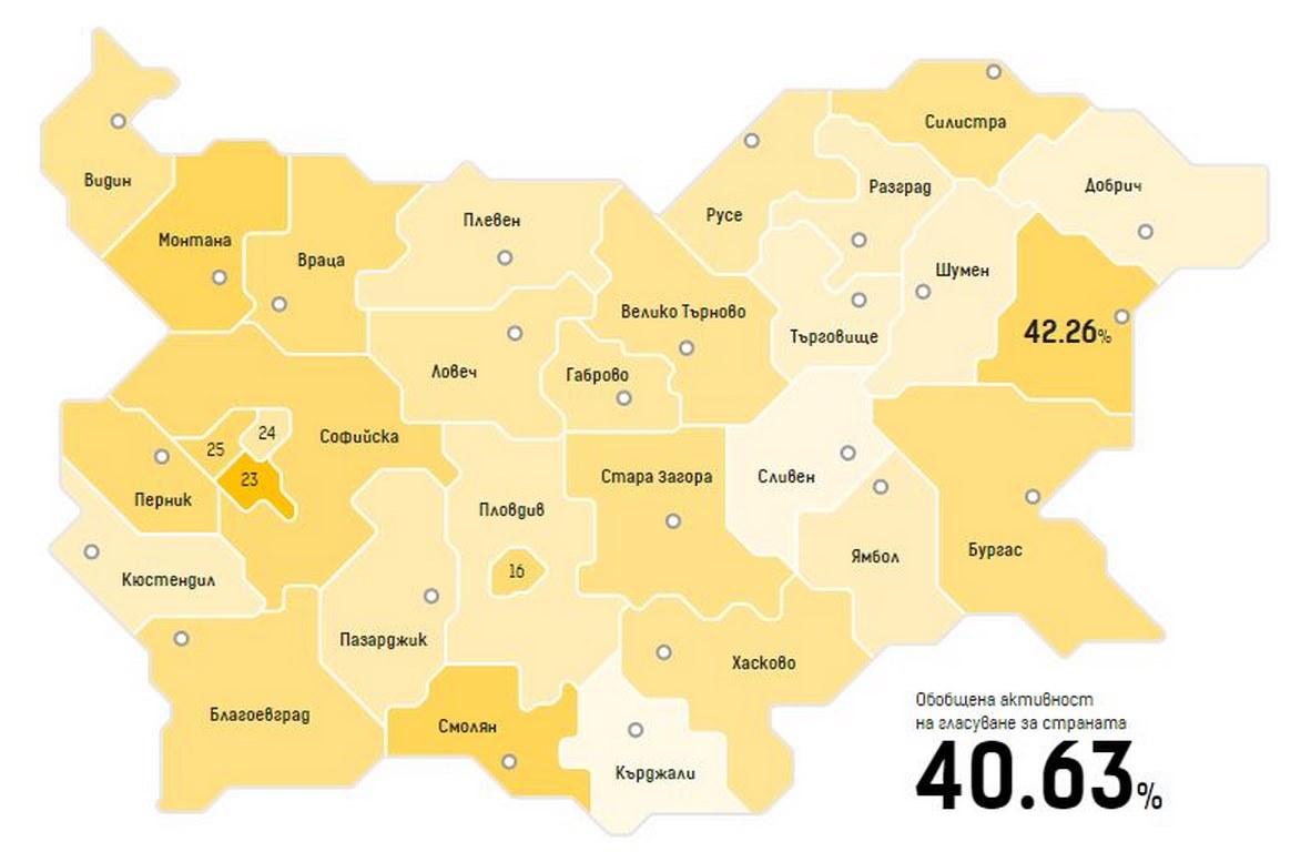 Гласували са общо 2 679 234 души, което е 40.63%. Комисията уточнява, че активността е изчислена на база междинни данни при 100% обработени протоколи.