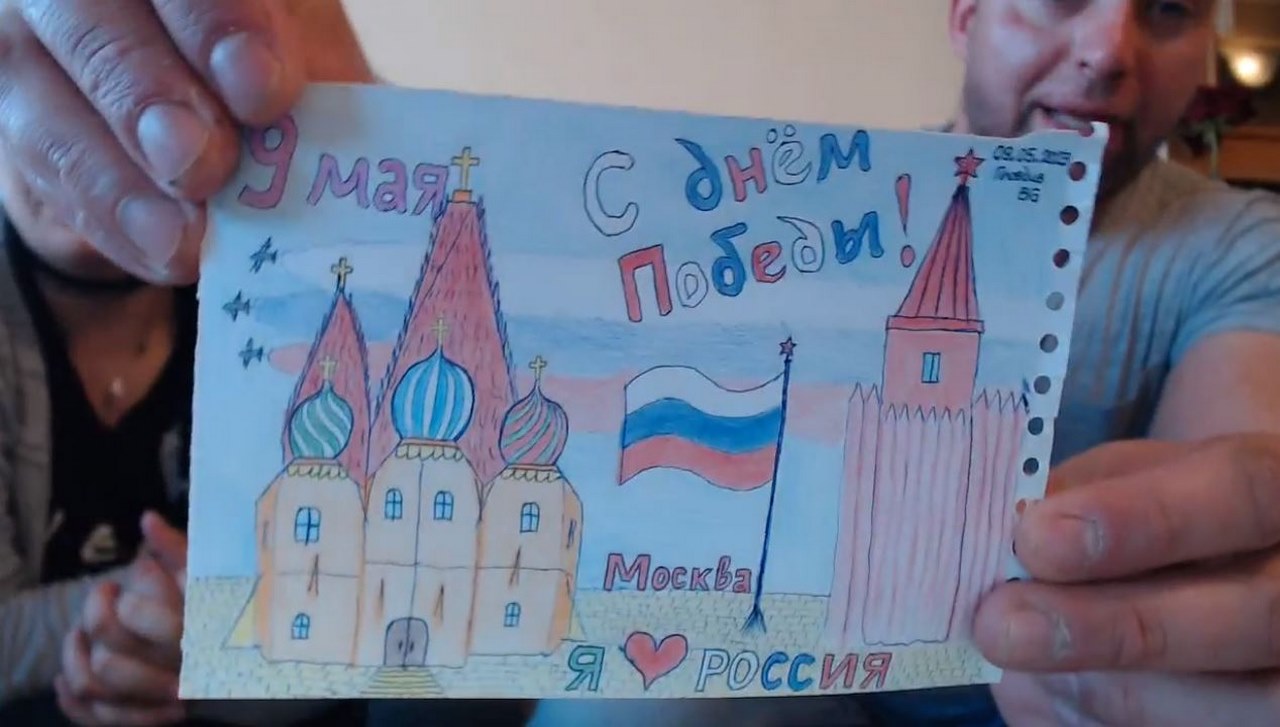 Сред рисунките на Емили от ареста, има и такава, изобразяваща Кремъл в Русия, по случай 9 май.