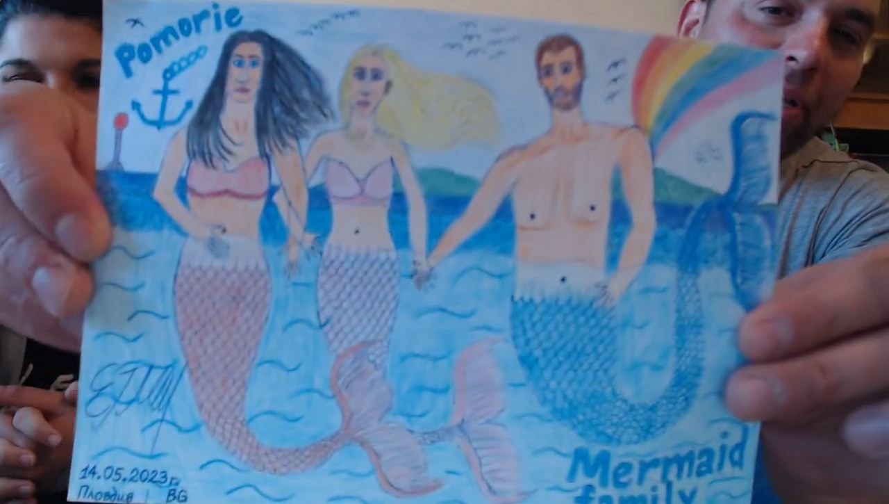Освен това Емили изобразила тримата и като русалки в Поморие.