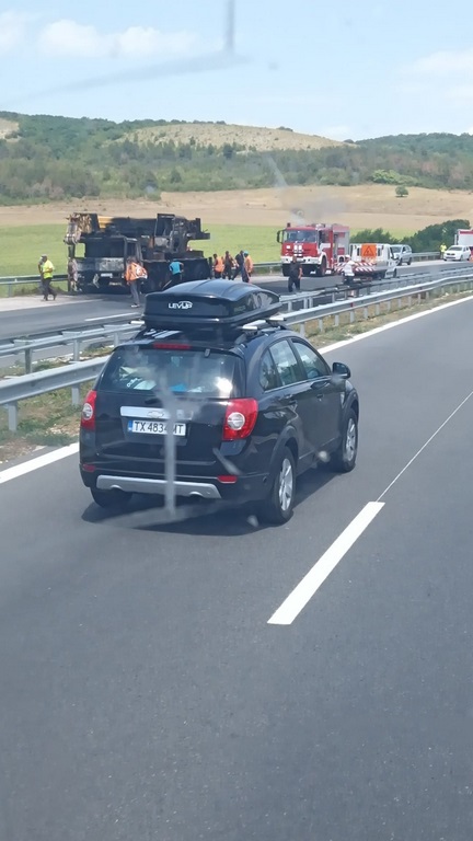 Автокран се е запалил на АМ „Хемус“ в близост до Девня и е изгорял напълно. Произшествието е предизвикало километрични задръствания, тъй като магистралата е била затворена и в двете посоки.