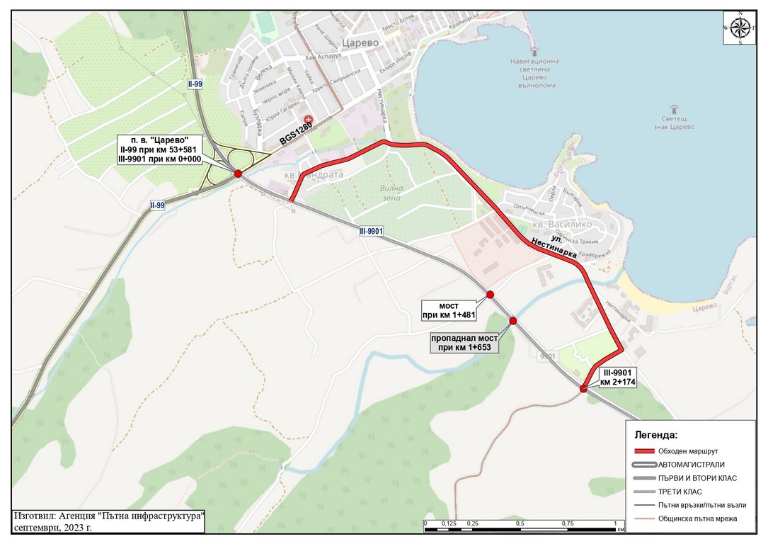 Обходният маршрут за МПС до 12 т от Царево за Ахтопол преминава покрай електроразпределителната станция, квартал „Василико“ и къмпинг „Нестинарка“