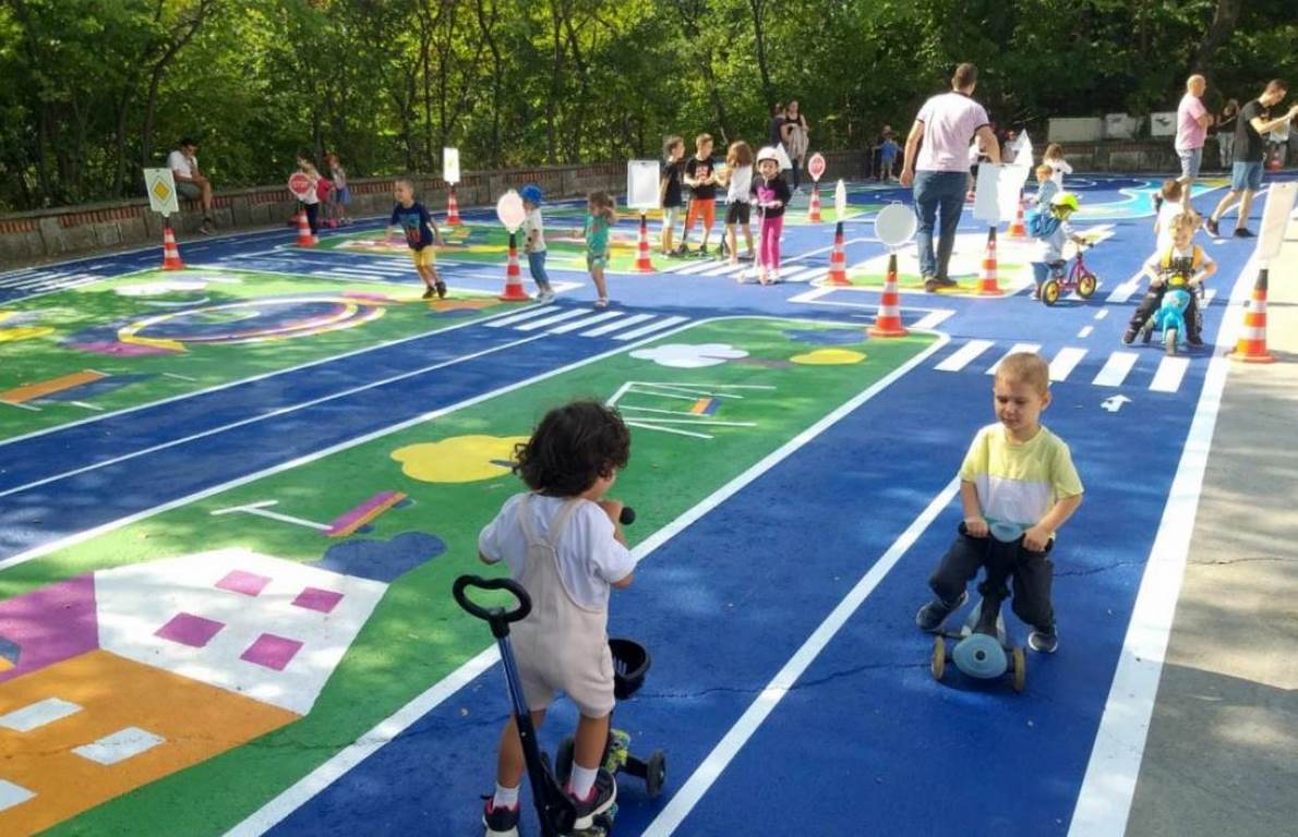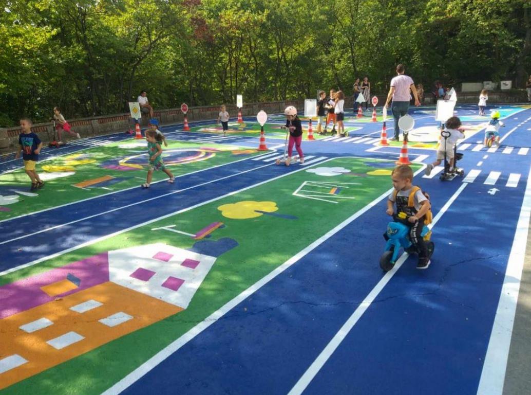 Малък град, нарисуван върху асфалта под Пантеона в Морската градина, дава възможност за обучение на деца по пътна безопасност – с цветни улици, пешеходни пътеки и знаци, съобщават от Община Варна.