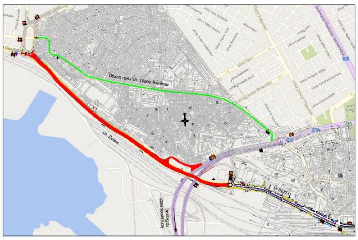 Като обходни маршрути могат да се ползват ул. „Тодор Влайков“ и бул. „Владислав Варненчик“ (съгласно приложената схема).