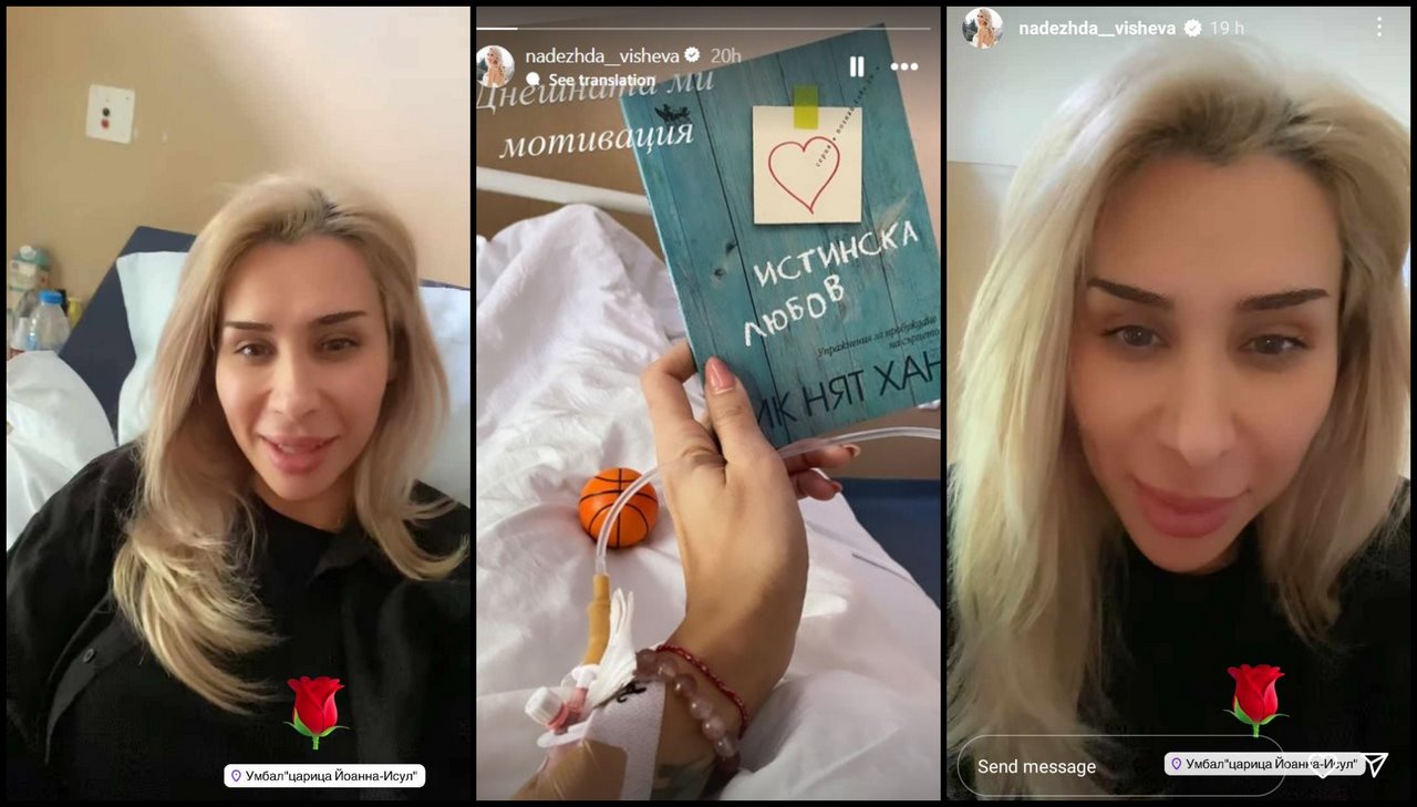 Блондинката качи стори в Инстаграм от болницата. От кадъра става ясно, че Надежда е на системи.