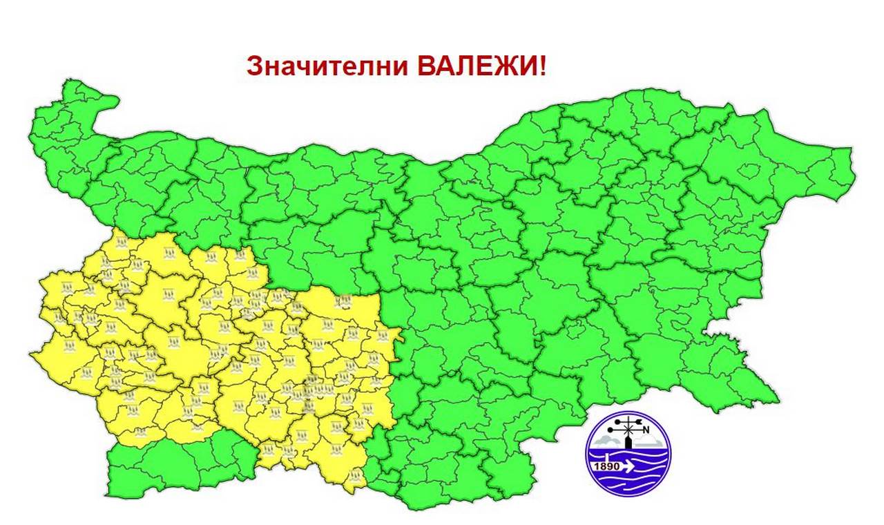 Предупреждението е в сила за следните области: София-град, София-област, Перник, Кюстендил, Благоевград, Пазарджик, Смолян и Пловдив.