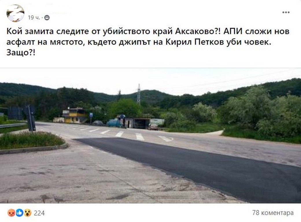 „АПИ сложи нов асфалт на мястото, където джипът на Кирил Петков уби човек. Защо?!“, пише мъжът.