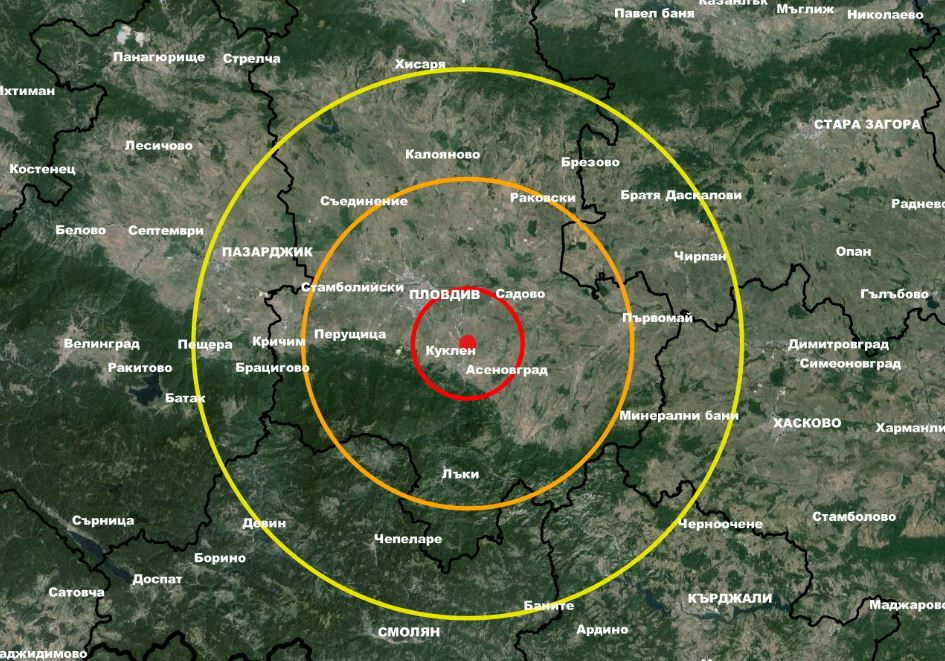 По данни на Националния Сеизмологичен Център към Национален Институт по Геофизика, Геодезия и География – БАН, събитието от 01:40 часа българско време е с епицентър на 5 км от град Асеновград, на 15 км от град Пловдив и на 150 км от град София.