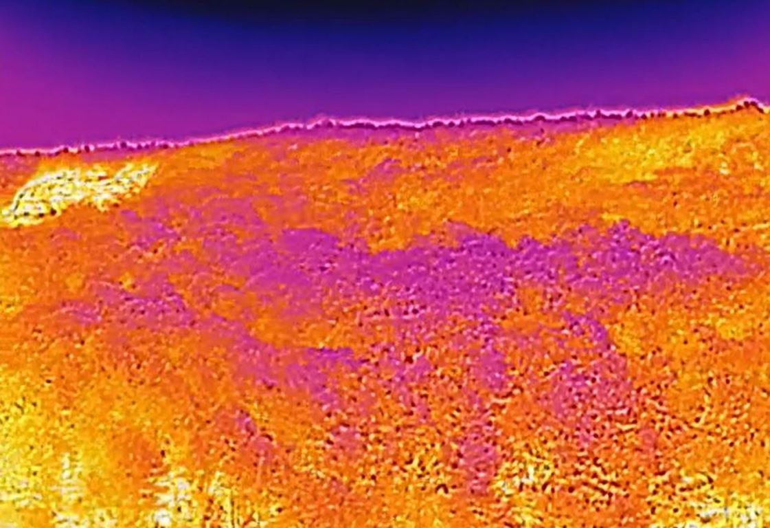 При направения оглед вчера, термалната камера на дрона е отчела стабилни температури под 40 градуса в зелените пространства.