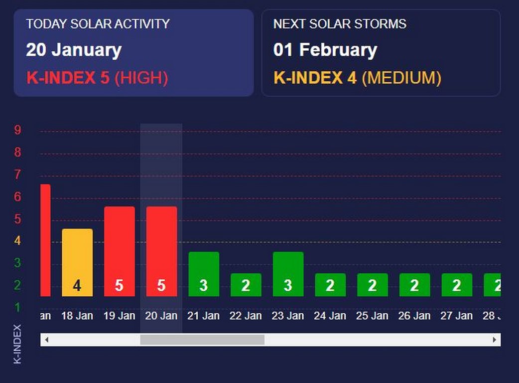 Според първоначалната прогноза през новата седмица магнитна буря ще има днес (20 януари 2025 г., понеделник).