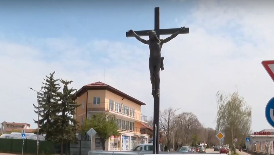 „До преди няколко месеца нямаше кръгово кръстовище тук. Това беше една от най-натоварените точки в града. След като го поставихме, няма катастрофи. Решихме, че кръстовището е най-правилното място за това разпятие. Да знаем, че ние сме божиите ръце. Не би трябвало да има спорове, а да се смирим пред Бог”, заяви Богомил Бранков, председател на Общинския съвет.