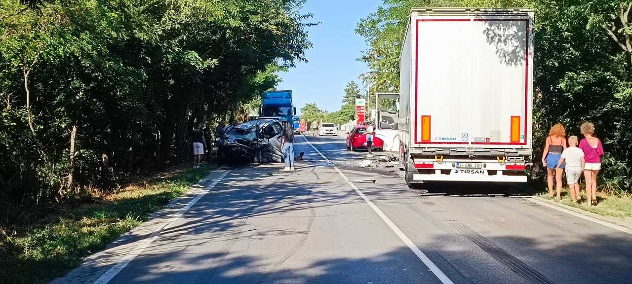 На входа на град Бяла, по пътя от Велико Търново, е станал тежък пътен инцидент с участие на ТИР и лек автомобил. По първоначална информация сблъсъкът е бил толкова силен, че предната част на колата е напълно смазана.