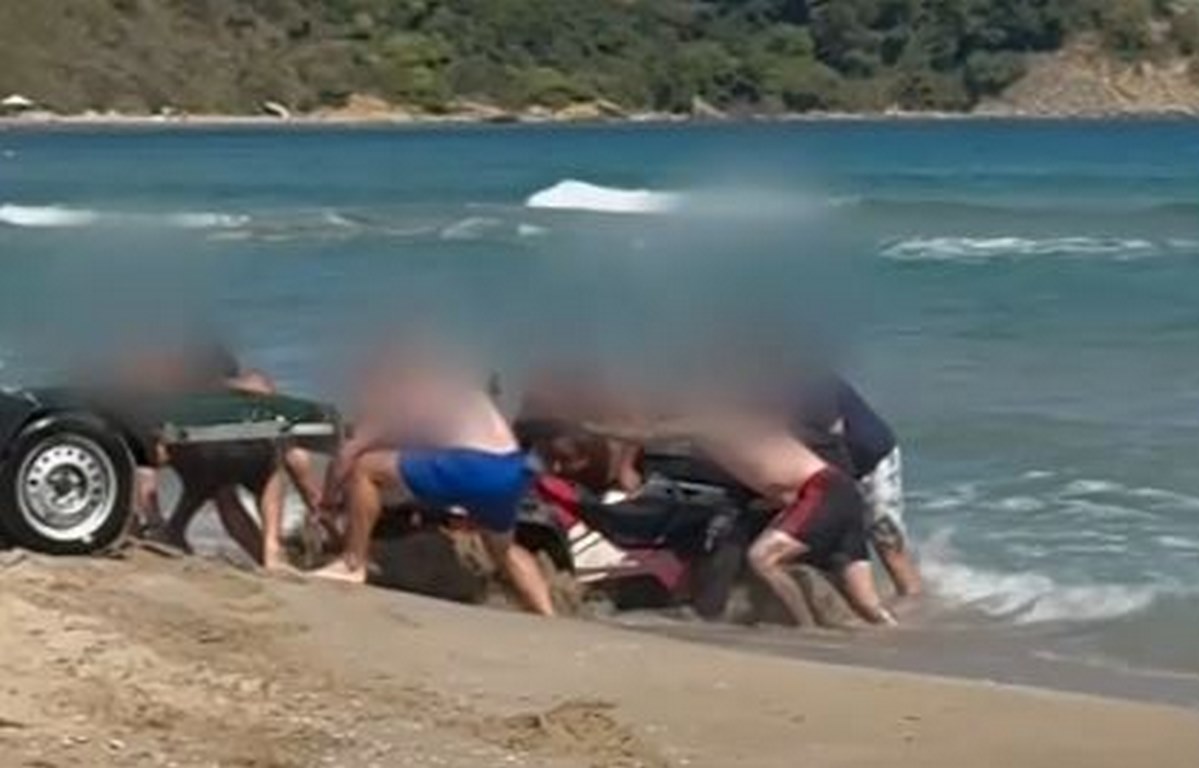 ATV заседна в пясъка на плажа край къмпинг „Смокиня“ в неделя следобед, докато собствениците му се опитвали да изтеглят джет от морето, съобщава Нова телевизия. На видеокадри от инцидента се вижда как няколко мъже се борят да освободят блокираното превозно средство.