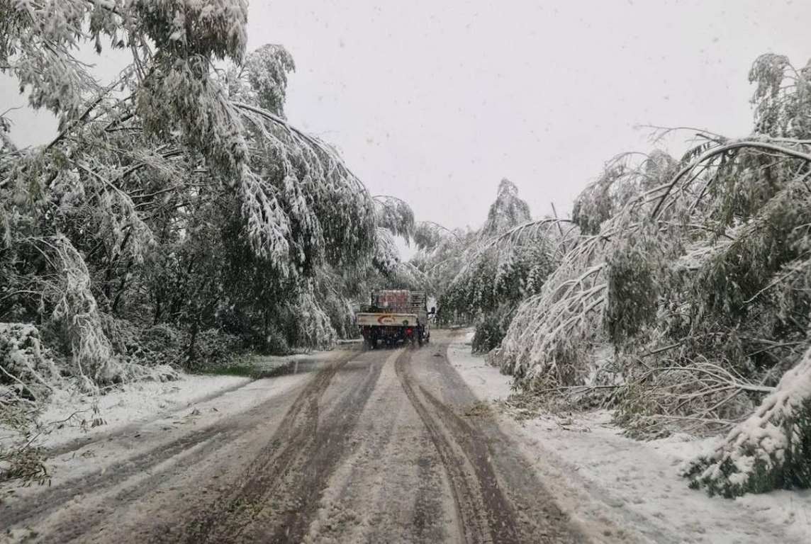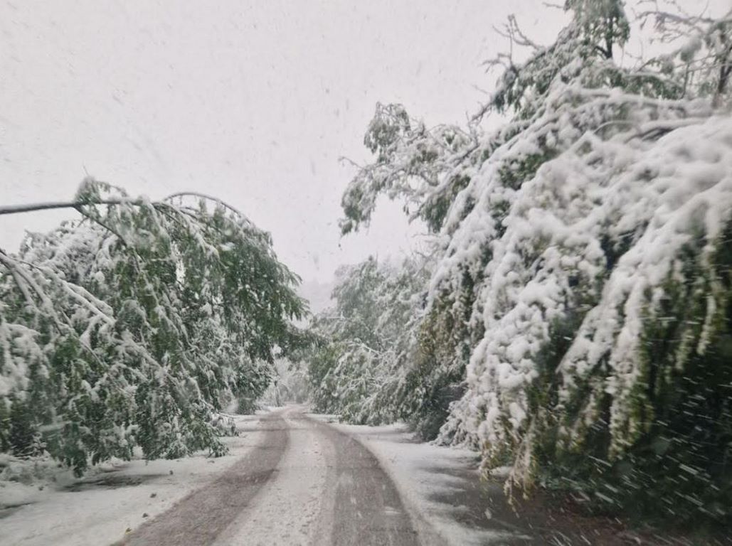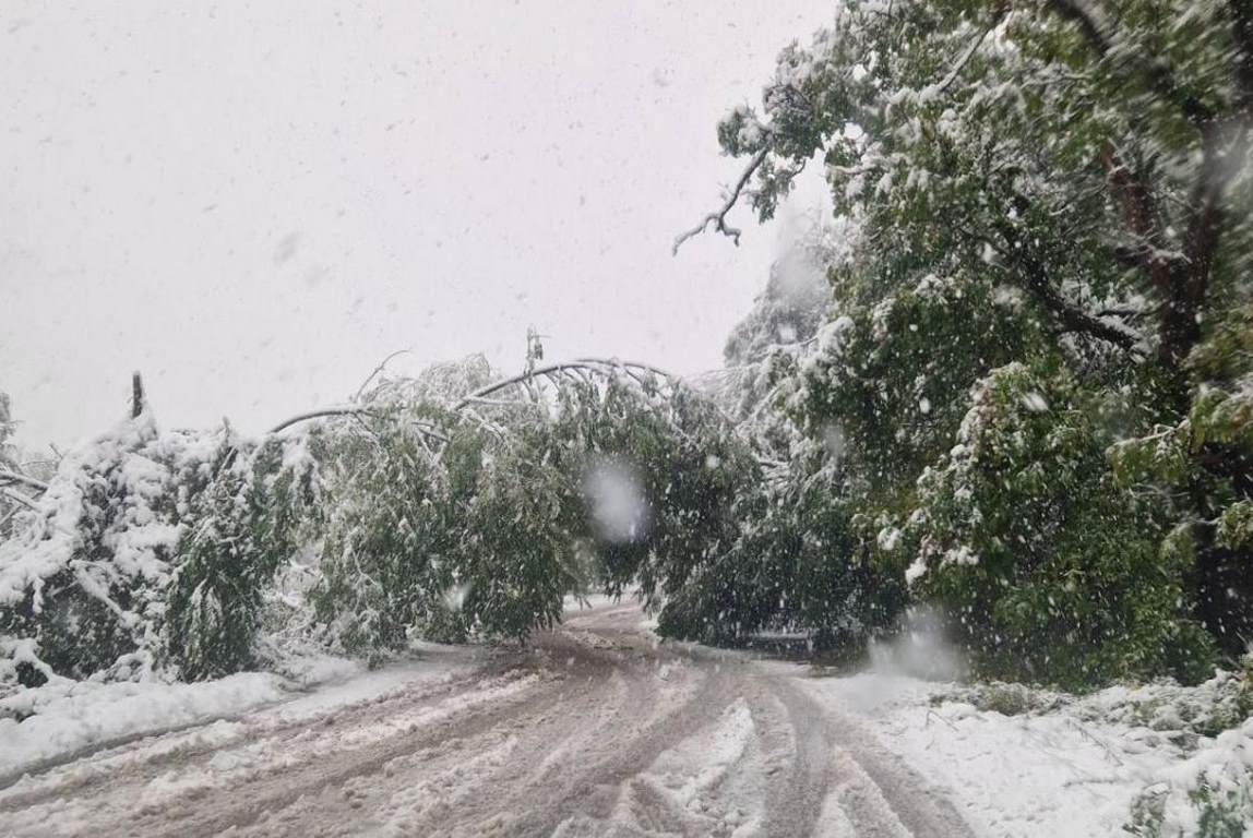 Паднали дървета и тежък сняг блокираха ключов планински проход