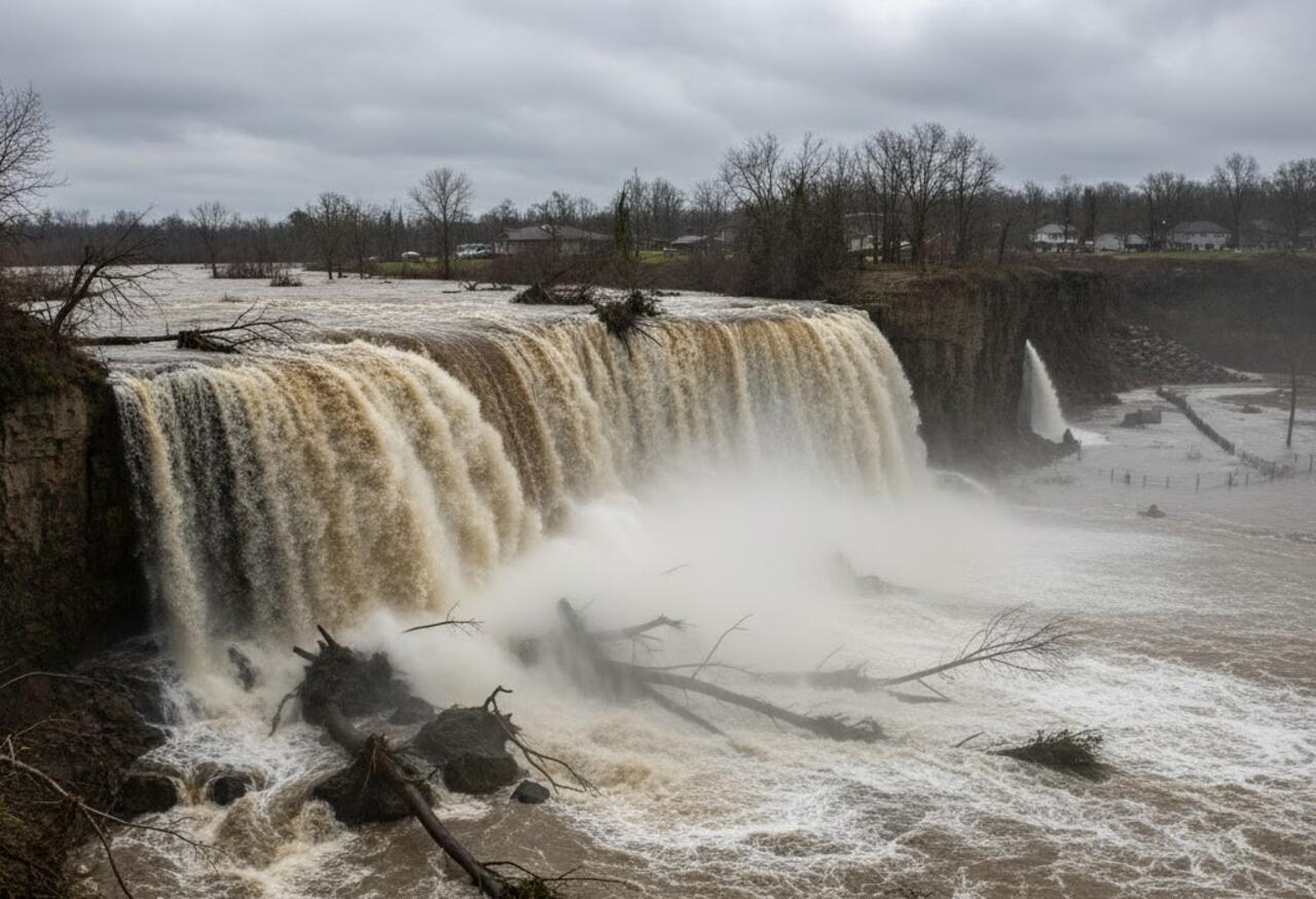 Оказва се, че в момента има водопад, спускащ се от големи бетонни късове – водата се е върнала там, където е била преди години.