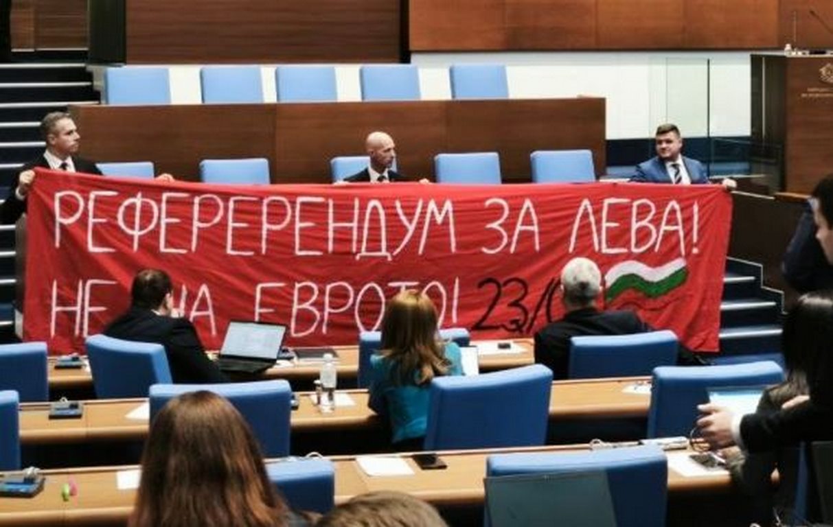 На 3 декември по време на дискусиите в пленарна зала за провеждането на референдум относно еврото, партия „Възраждане“ предизвика вълна от коментари с транспарант, на който думата „референдум“ беше изписана неправилно – „рефереРендум“. От „Възраждане“ твърдят, че акцията е целяла да провокира интерес и отново да отвори дискусията за съдбата на българския лев в обществото, като думата е била изписана по този начин умишлено.