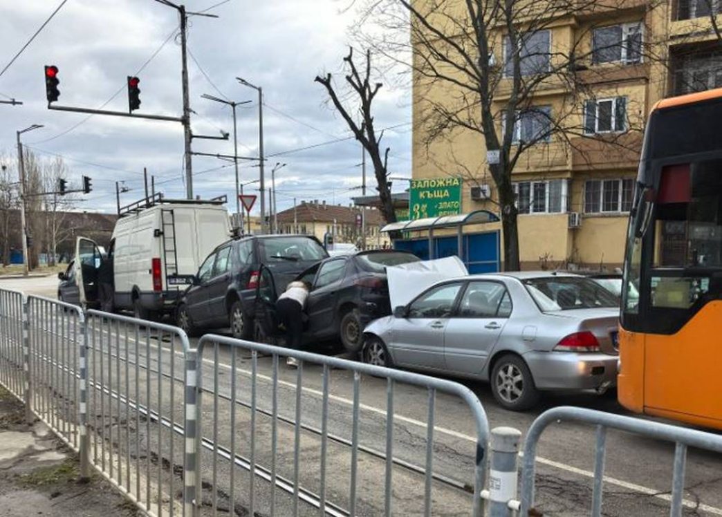Зрелищна верижна катастрофа, включваща шест превозни средства, предизвика сериозни затруднения в трафика на столичния булевард „Рожен“ днес. Инцидентът, в който са участвали четири леки автомобила, микробус и автобус от градския транспорт, е станал на светофар и е довел до значителни материални щети и транспортен хаос в района.