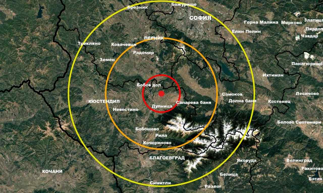 Епицентърът на сеизмичното събитие е бил локализиран на 9 километра североизточно от град Дупница, в югозападната част на страната. Разстоянието до София е приблизително 41 километра.