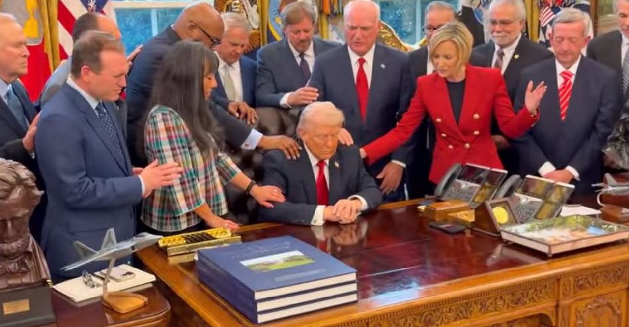Президентът на САЩ Доналд Тръмп прие пастори и религиозни лидери от различни щати за обща молитва в Белия дом. Срещата се проведе в Овалния кабинет, където духовниците образуваха молитвен кръг около държавния глава, докато той стоеше седнал зад бюрото си.