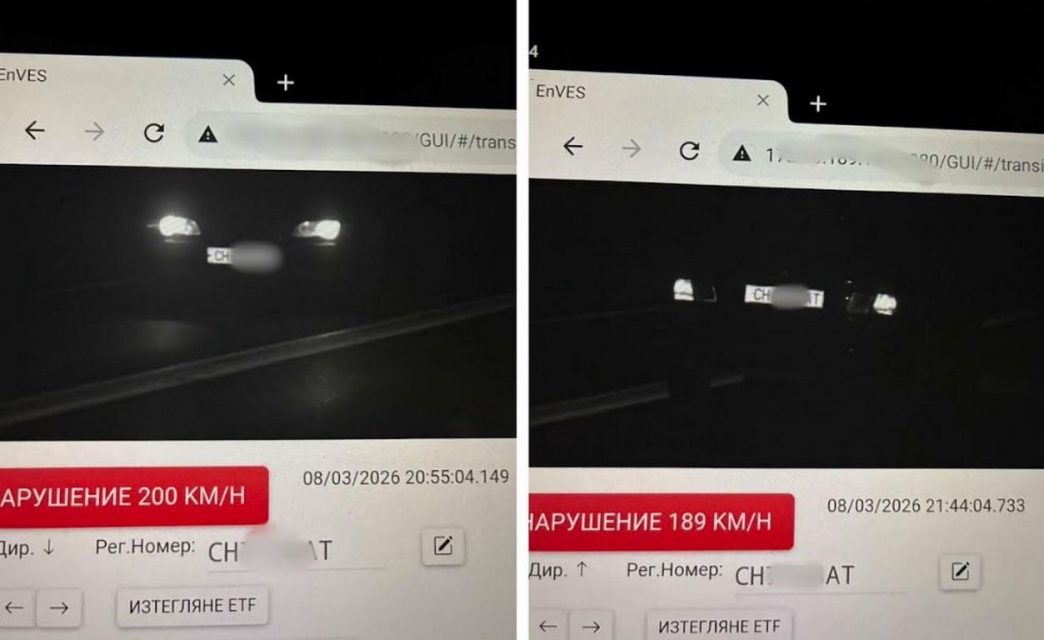 Едва 49 минути по-късно, в 21:44 часа, същият автомобил е засечен на същото място, но този път в посока град Сливен със скорост 189 км/ч. Отново, превишението е драматично – близо 100 км/ч над допустимото.