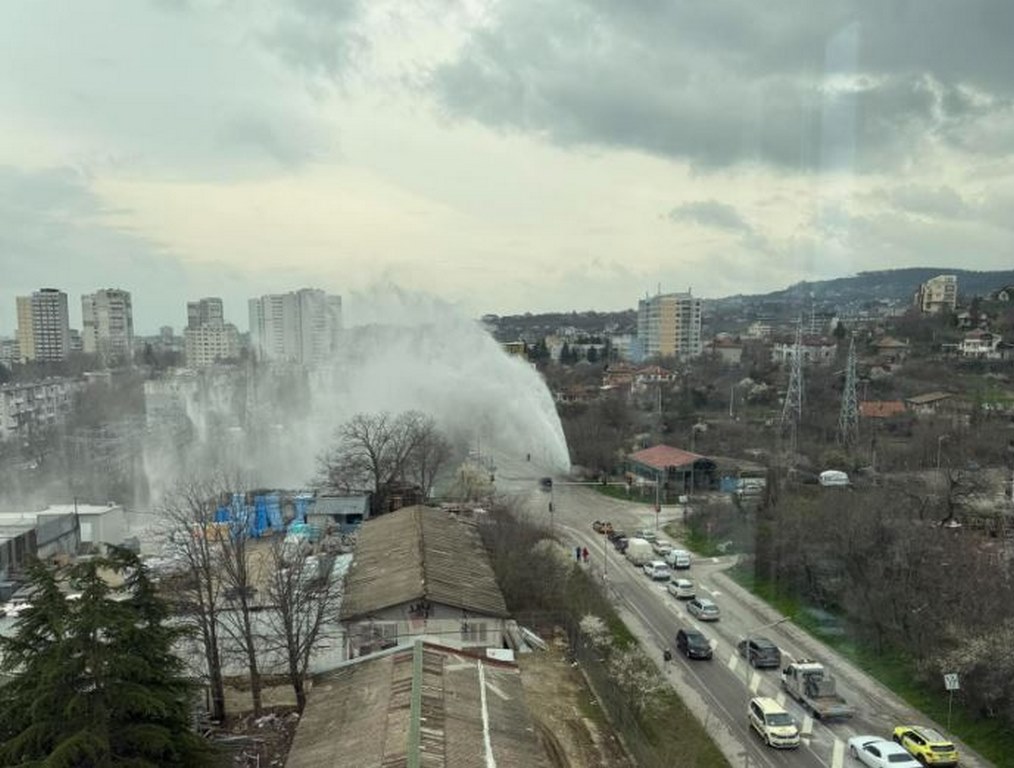 Голяма водна авария засегна ключов район във Варна — вода избива като гейзер и затруднява движението по бул. „Христо Смирненски“ в участъка около ул. „Мир“. Инцидентът създава опасност и неудобство за шофьорите и пешеходците в района.