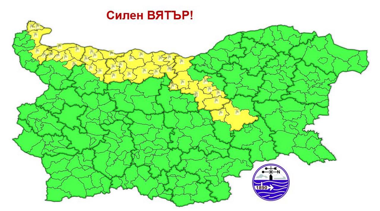 За утре – вторник, 7 април, е обявен жълт код за силен вятър в областите Видин, Монтана, Враца, Плевен, Велико Търново и Сливен. В засегнатите райони поривите на вятъра могат да достигнат до 90 км/ч, което налага повишено внимание от страна на населението и институциите.