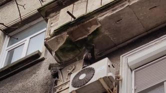 Видео ОбществоОпасен инцидент в Русе: Част от балкон се срути в центъра, удари магазин (ВИДЕО) ОтРедакция "Нова Варна"февруари 24, 2026